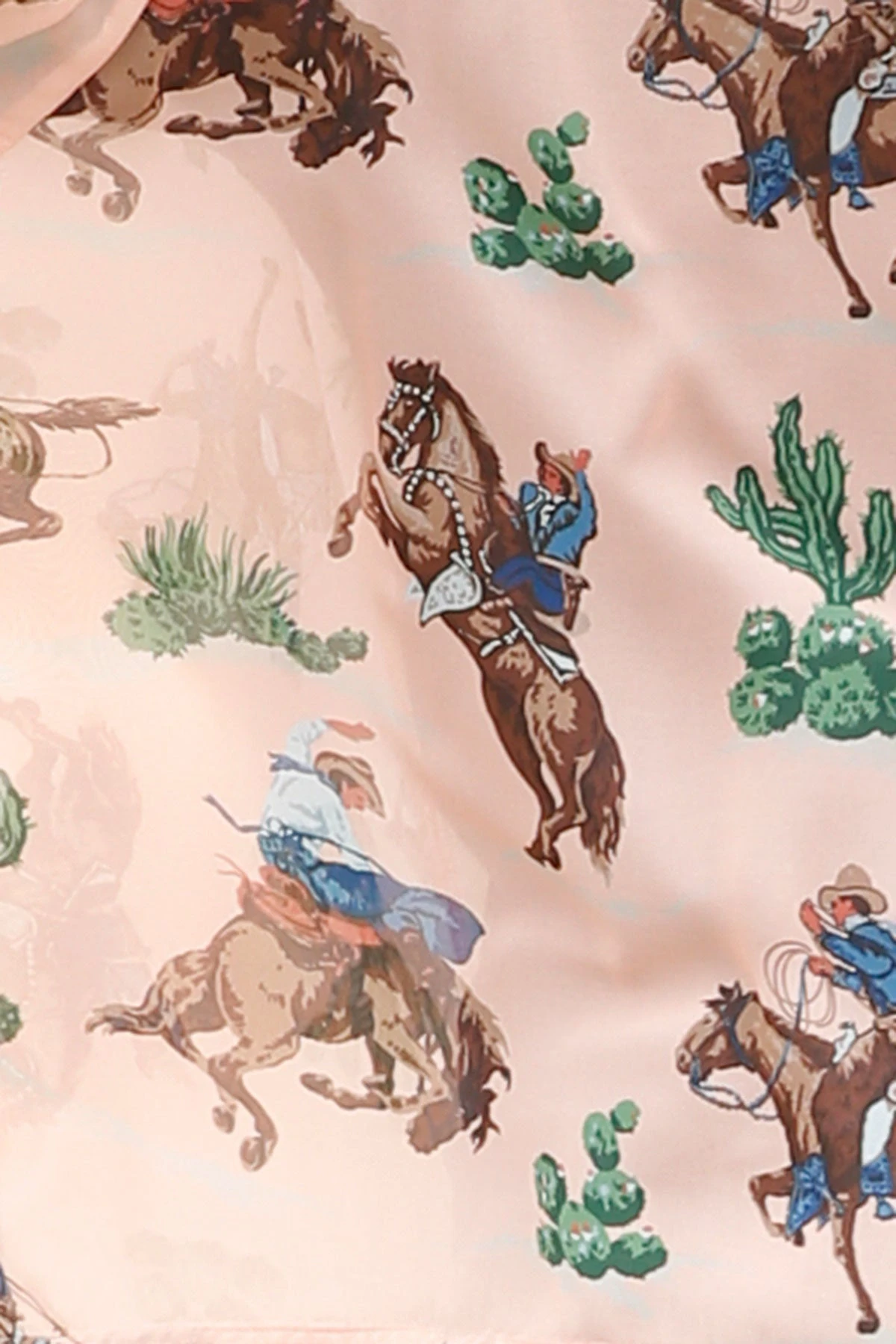 Peach Kimono with All Over Cactus and Bronc Rider Print.