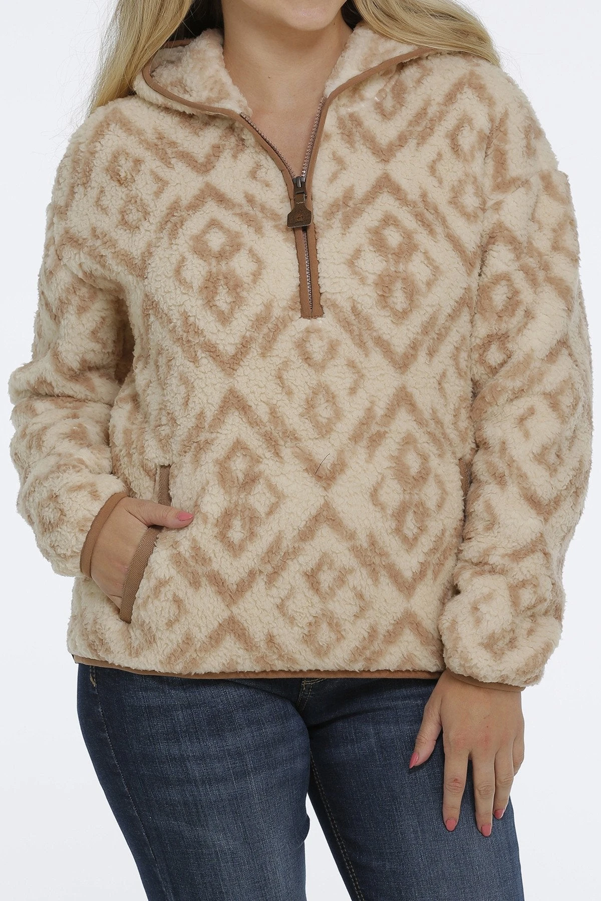 Cream Southwest Print 1/2 Zip Sweater Sherpa Hoodie.