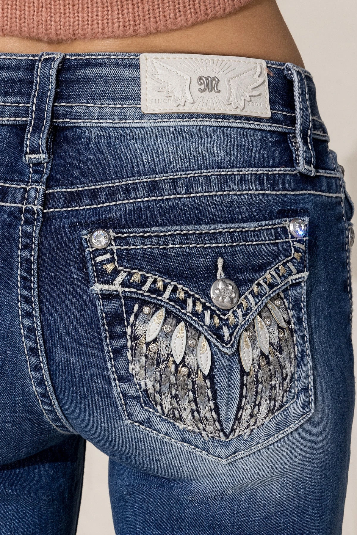 Miss Me Women’s Mid Wash Embroidered Wing Jean