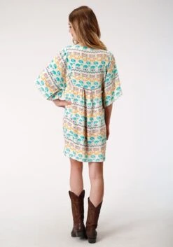 Stetson Women’s Blue With Pink Floral Pattern Sleeveless Dress