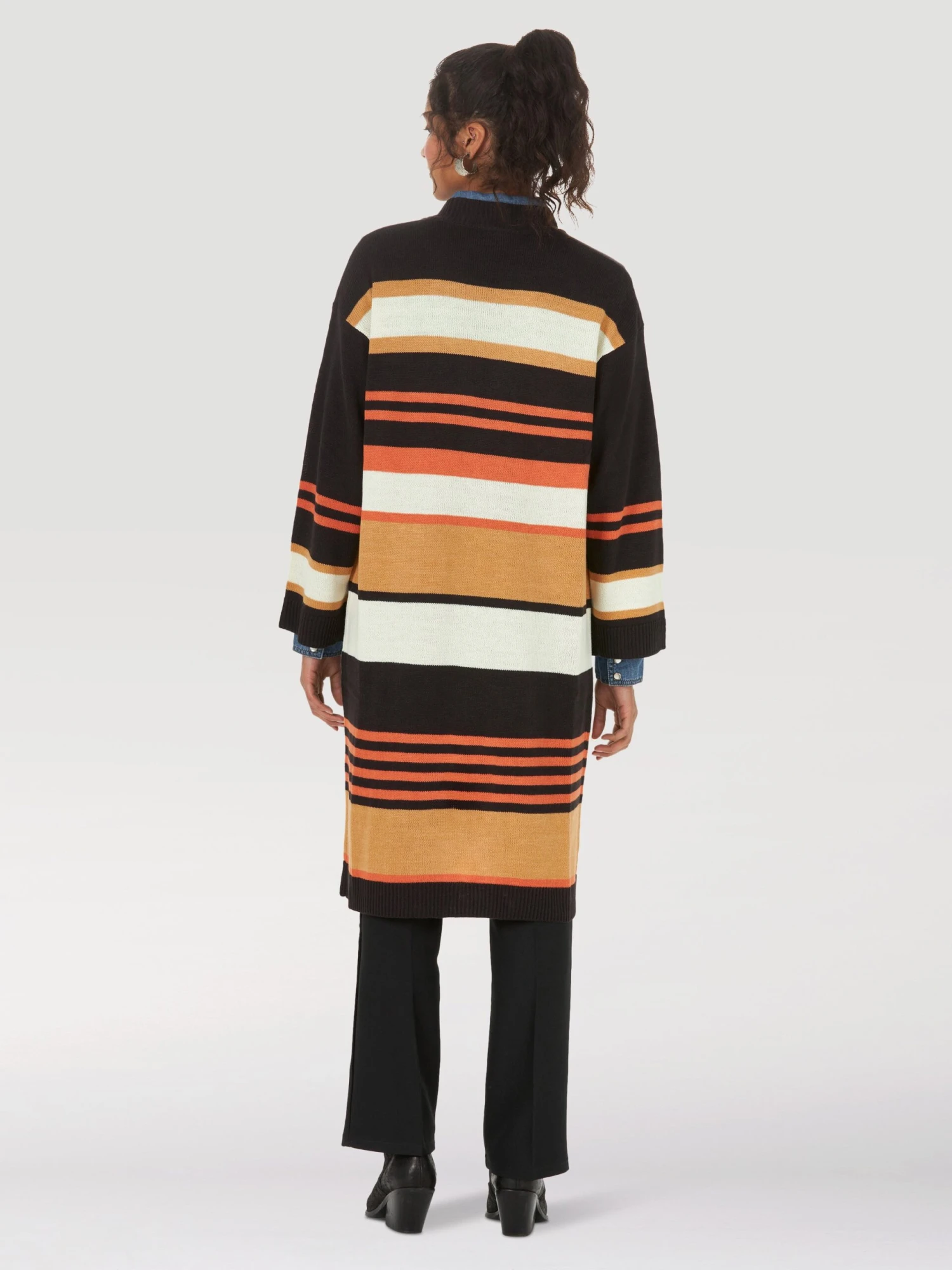 Black and Orange Multi Stripe Long Sleeve Cardigan.